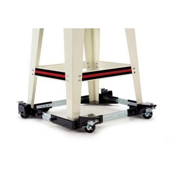 The Mobile Base adds a new dimension of flexibility to your JET machines. Equipment previously considered immovable can easily be moved by only one person – rearrange your shop for special projects in just minutes. With 2 fixed and 2 swivel casters, the adjustable width and length let you configure the base to the tool for total support and portability.