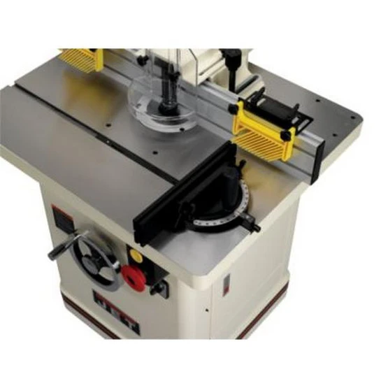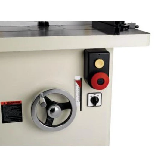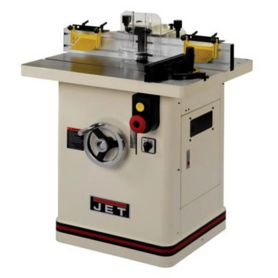 This heavy-duty JET Shaper is available with a powerful 3HP, 1Ph motor with magnetic controls. The four-speed (4000, 6000, 8000, 10000 RPM) step pulley drive with quick release lever allows you to select the best speed and torque for different cutter diameters. The spindle is reversible, and receives maximum power transfer from the v-belt. The independently adjustable fences have micro adjust controls for precise positioning.
