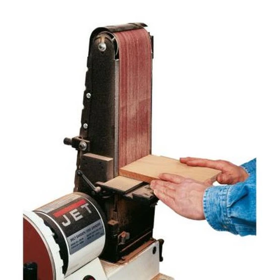 - Large cast iron table has preset stops at 90° and 45° to let you use the belt sander vertically, horizontally or anywhere in between
