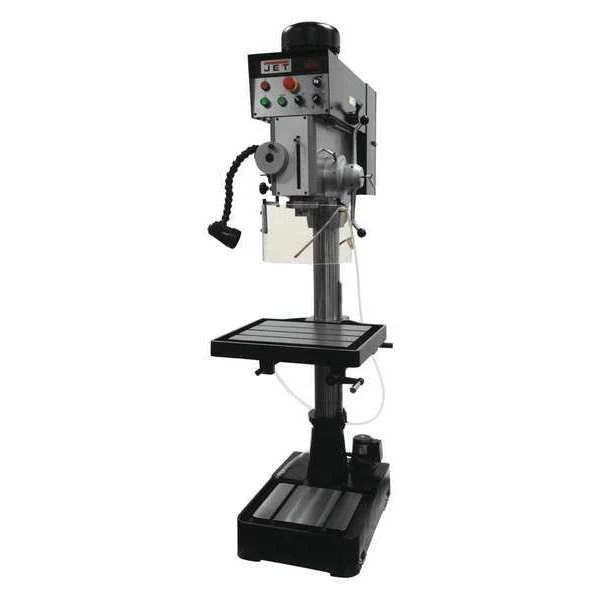 Floor Drill Press, Primary Material Application Metal, Power Down Feed Included Yes, Drill Press Type Floor Stand, Drill Press Application Drilling, Speed Control Variable, Speed Adjustment Mechanical Variable Speed Drive System, Swing 20 in, Spindle-to-Column Distance 10 7/16 in, Horsepower 2 hp, Voltage 460V AC, Spindle Taper 3MT, Number of Speeds Variable, Chuck Size 3/4 in, Chuck Style Keyed, Guard Included Yes, Coolant System Yes, Quill Diameter 2 61/64 in, Tapping Capacity in Steel 1 in
